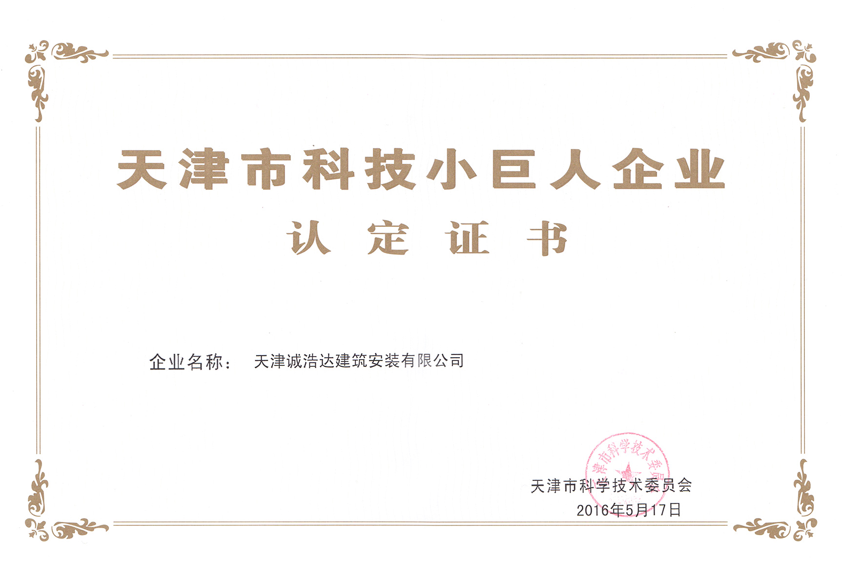榮譽資質:天津市科技小巨人企業